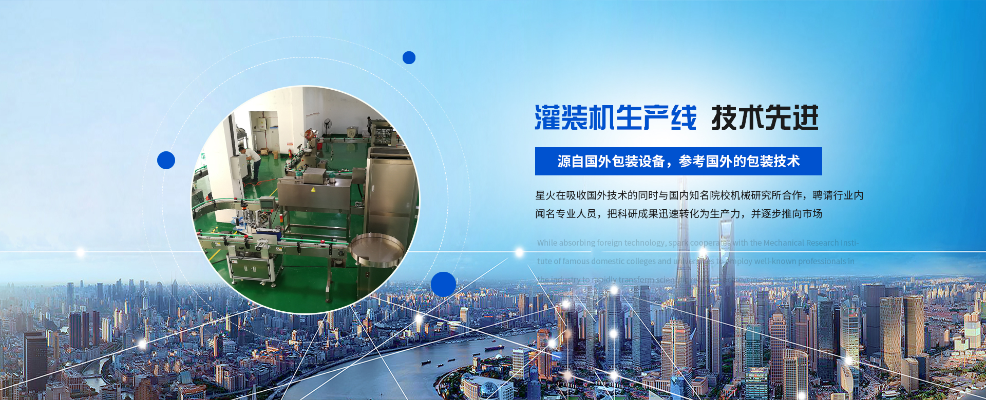 鄭州星火包裝機(jī)械有限公司是一家集科研、生產(chǎn)、銷售、服務(wù)于一體的高新科技企業(yè),公司現(xiàn)有員工100多人,是一家從事食品、制藥、化工灌裝機(jī)、灌裝生產(chǎn)線、無人化智能包裝生成線的專業(yè)制造廠家。星火人秉承“誠信、責(zé)任、服務(wù)、發(fā)展”的經(jīng)營宗旨,以“提高企業(yè)包裝效率”為企業(yè)使命;以“科技創(chuàng)新”引導(dǎo)企業(yè)的經(jīng)營與發(fā)展思路,并以企業(yè)文化建設(shè)的成效來促進(jìn)品牌的發(fā)展。
